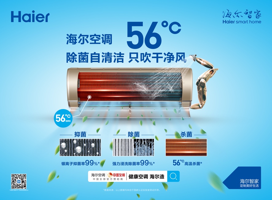 不僅如此,針對空調(diào)臟、清洗難的問題,海爾還升級了56度C除菌自清潔空調(diào)。當空調(diào)開啟自清潔后,蒸發(fā)器溫度可達56℃以上,達到除菌除塵的效果。