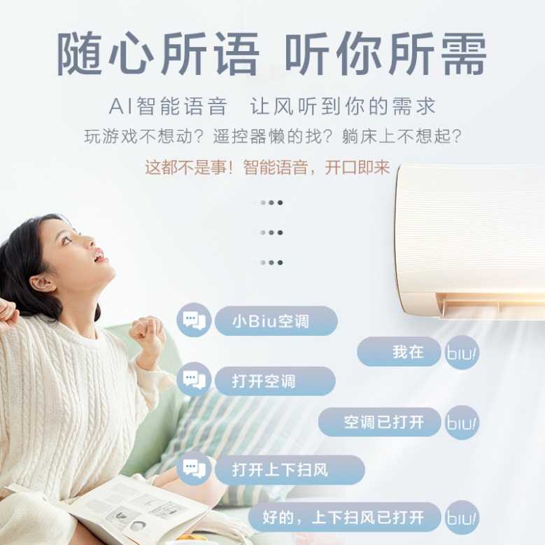 此外,小Biu空調(diào)Max搭載了AI智能語音控制技術(shù),你只需要對它說“小Biu空調(diào)”將其喚醒,就能實(shí)現(xiàn)開機(jī)關(guān)機(jī)、模式切換、調(diào)節(jié)溫度等操作,實(shí)現(xiàn)了真正的智能語音操控。同時(shí),小Biu空調(diào)Max采用行業(yè)一流的海立壓縮機(jī),并具有高溫自清潔、APP遠(yuǎn)程控制、急速冷暖等亮點(diǎn)功能,提供整機(jī)6年、壓縮機(jī)10年保修的服務(wù)。