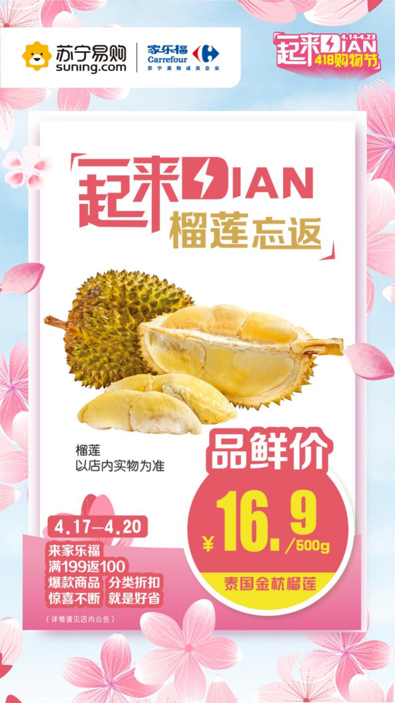 據(jù)有關(guān)方面透露,即將啟幕的“4.18一起來(lái)Dian”購(gòu)物節(jié),家樂福將加碼福利,推出重磅優(yōu)惠的同時(shí),奉上多款強(qiáng)勢(shì)優(yōu)質(zhì)生鮮爆品,勢(shì)要擊穿底價(jià)。以“水果之王”榴蓮為例,每斤16.9元的限時(shí)品鮮價(jià)。