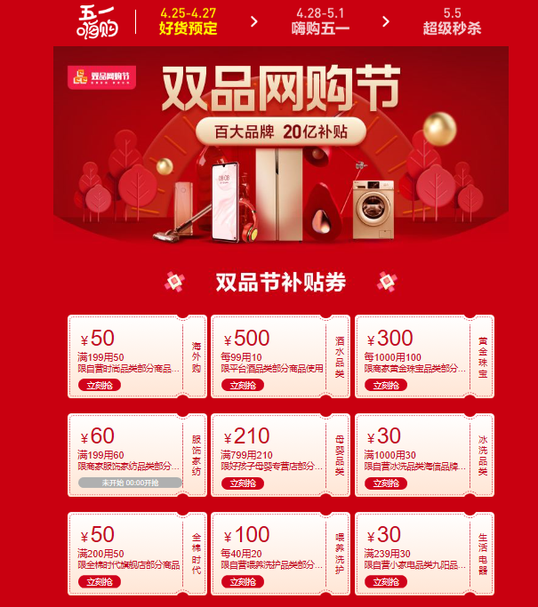 見(jiàn)圳客戶端·深圳新聞網(wǎng)2020年4月29日訊 貫穿整個(gè)五一假期的“雙品網(wǎng)購(gòu)節(jié)”已經(jīng)開啟,蘇寧、阿里等電商平臺(tái)紛紛上線促銷活動(dòng)。消費(fèi)補(bǔ)貼怎么領(lǐng),有哪些值得買的品質(zhì)好物,還有哪些活動(dòng)值得期待?消費(fèi)回暖,買買買的熱情迎來(lái)釋放。