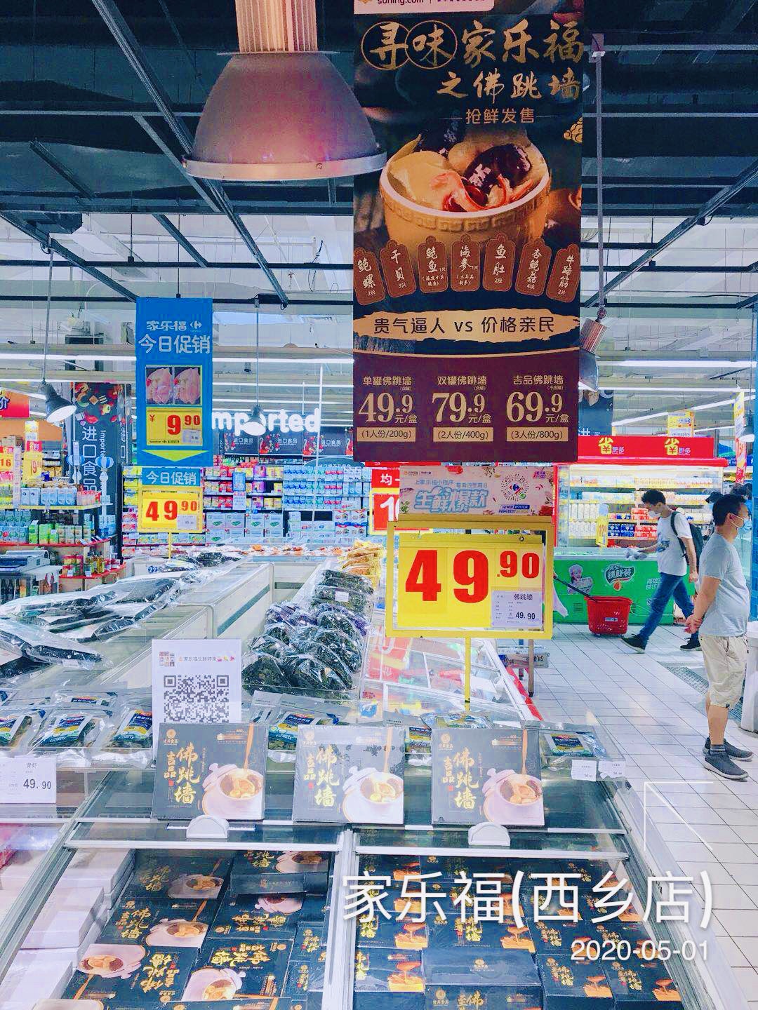家樂福此番以“佛跳墻”打響頭炮。古人曰:“壇啟葷香飄四鄰,佛聞棄禪跳墻來”。佛跳墻作為滿漢全席的主菜之一,匯聚鮑魚、海參、魚肚、鮑螺、干貝、牛蹄筋、杏鮑菇、素翅等數(shù)十種珍貴食材煨于一蠱,吃起來軟嫩柔潤,湯汁濃郁鮮香。
