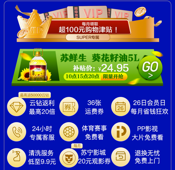 通過登陸蘇寧易購APP,搜索關(guān)鍵詞“白衣天使”,進入自動申領頁面。 SUPER會員是蘇寧為用戶打造的專屬會員體系,能夠滿足“白衣天使”們視頻娛樂、生活購物、服務等全場景的需求。