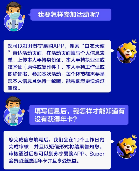 為表達對醫(yī)護工作者的敬意,蘇寧對全國醫(yī)護人員開放SUPER會員免費申領活動。