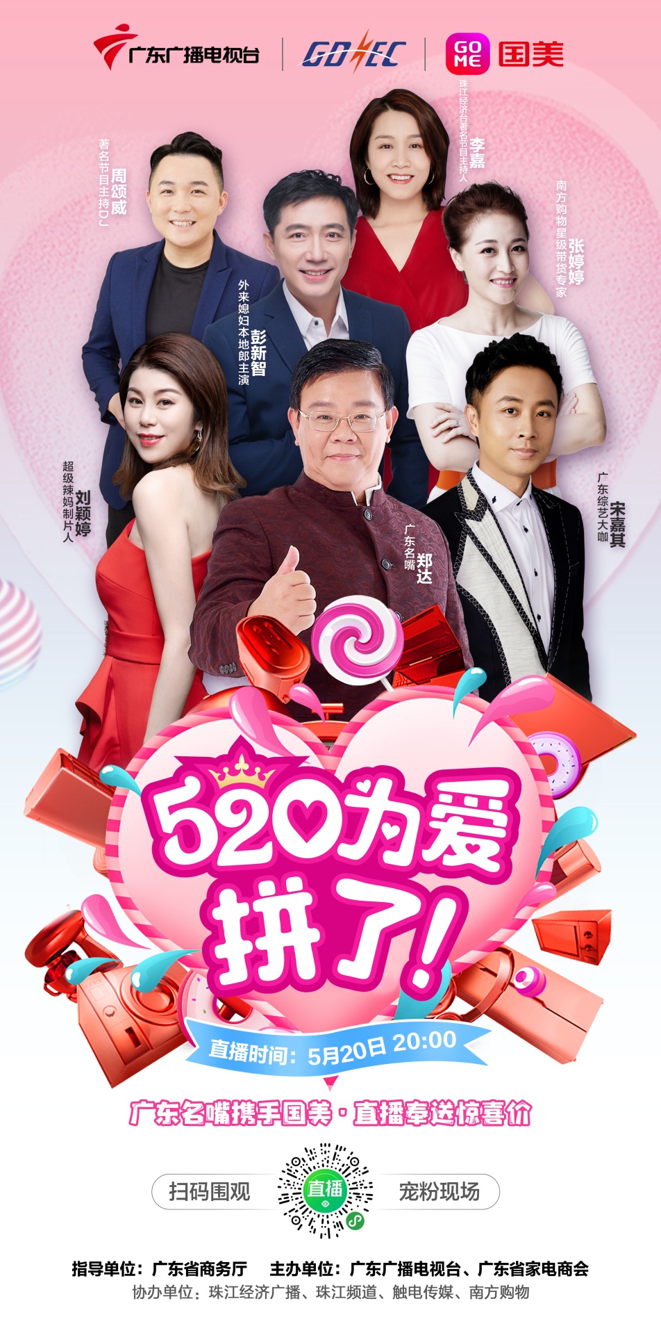 見圳客戶端·深圳新聞網2020年5月15日訊 在廣東省商務廳指導下,由廣東廣播電視臺、廣東省家電商會和華南國美聯合舉辦,“520為愛拼了”超級直播將于5月20日晚8點整驚喜開播!廣東名嘴鄭達、綜藝大咖宋嘉其、影視演員彭新智攜一眾明星主播為廣東省的街坊們帶來空調、冰箱、洗衣機、電視、手機等大批家電潮品!屆時,主播們不僅給街坊們帶來意想不到的低價,直播中還會不間斷抽出手機、家電等大批豪禮,敬請期待!這次直播是全國首次大小屏同步直播,街坊們不僅可以通過美店商城、看點直播、京東、珠江頻道直播小程序、珠江經濟廣播呼啦直播小程序、南方購物直播小程序、觸電新聞APP等平臺在線觀看并下單,而且還可以打開南方購物電視頻道下單購買。