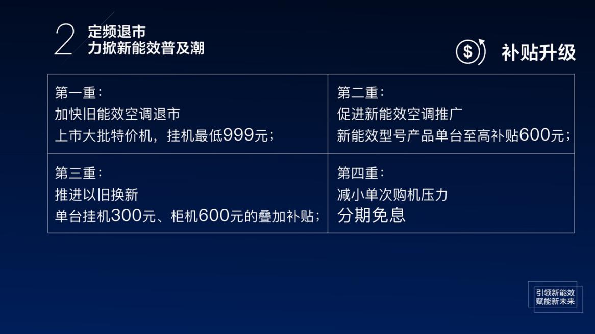 同時,“新一級能效聯(lián)盟”還將持續(xù)開展“空調(diào)節(jié)能風(fēng)暴”等綠色消費(fèi)讓利活動。該活動涵蓋四重補(bǔ)貼,分別是老能效清倉、新能效補(bǔ)貼、以舊換新及分期免息,多管齊下加速新舊能效產(chǎn)品的切換、擴(kuò)大綠色消費(fèi)規(guī)模。