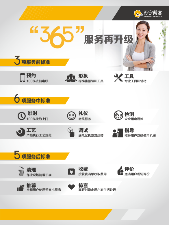 “三分產(chǎn)品七分安裝”,超60萬套空調(diào),如何保障快速及時的安裝?蘇寧幫客負責人告訴記者,蘇寧全國區(qū)域空調(diào)售后服務(wù)堅持貨到24小時上門安裝的服務(wù)時效,并按照用戶預(yù)約時間準時上門。不僅如此,全國蘇寧幫客空調(diào)安裝服務(wù)統(tǒng)一堅持365服務(wù)標準,覆蓋作業(yè)前、中、后期的工服、工牌、鞋套、墊機布、收費標準、衛(wèi)生維護等多項標準,并歡迎用戶監(jiān)督。