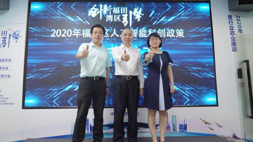 福田區(qū)人民政府歐陽(yáng)繪宇副區(qū)長(zhǎng)、福田區(qū)科技創(chuàng)新局張忠暉局長(zhǎng)、人工智能行業(yè)協(xié)會(huì)郎麗艷執(zhí)行會(huì)長(zhǎng)聯(lián)合啟動(dòng)“創(chuàng)新福田,灣區(qū)引擎”2020年福田區(qū)人工智能科創(chuàng)政策正式發(fā)布儀式。