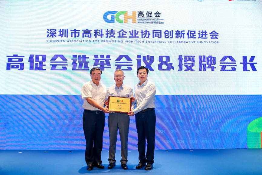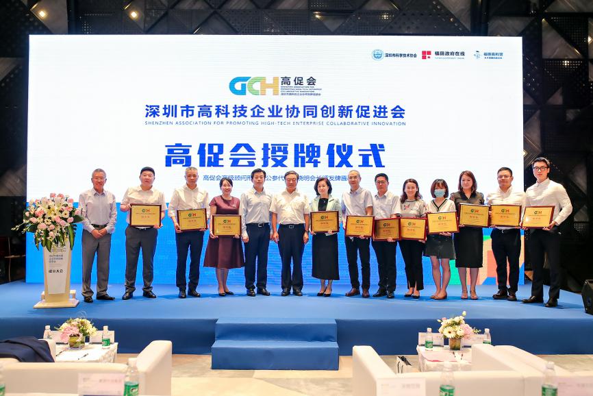 高促會(huì)會(huì)長靳曉明因北京疫情原因無法來到現(xiàn)場,由高促會(huì)高級顧問邢繼俊代表靳會(huì)長接受由榮譽(yù)會(huì)長馬蔚華和福田區(qū)科技創(chuàng)新局局長張忠暉頒發(fā)的高促會(huì)會(huì)長牌匾。