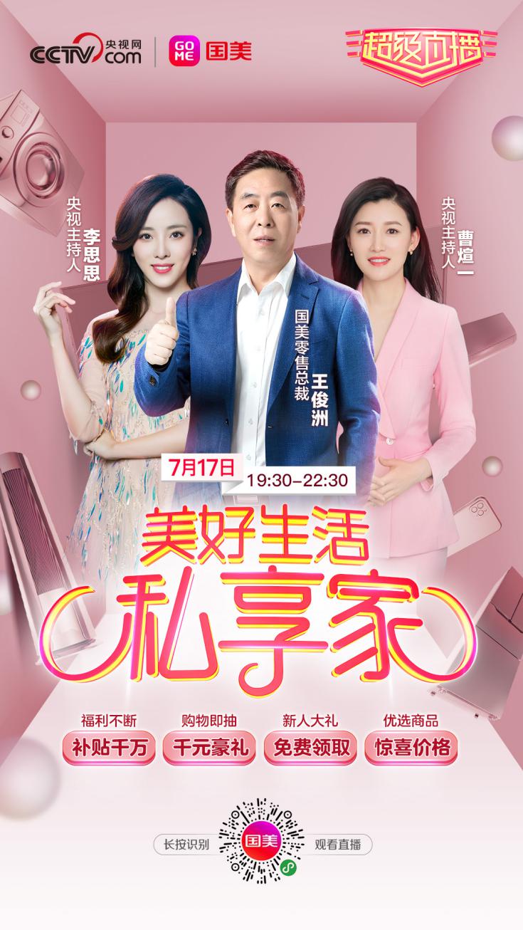 據(jù)了解,7月17日晚19:30,國(guó)美將再度攜手央視網(wǎng),共同打造以“美好生活私享家”為主題的超級(jí)直播。國(guó)美零售網(wǎng)紅總裁王俊洲再現(xiàn)江湖,央視主持人李思思、曹煊一助陣“砍價(jià)”。此外,“國(guó)美小虎”也將帶著多款家電和日用熱銷(xiāo)商品現(xiàn)身直播間,為消費(fèi)者帶來(lái)更多優(yōu)惠。用戶(hù)可通過(guò)央視網(wǎng)抖音號(hào)、國(guó)美微信小程序、拼多多國(guó)美官方旗艦店、京東國(guó)美官方旗艦店實(shí)時(shí)在線(xiàn)觀(guān)看。