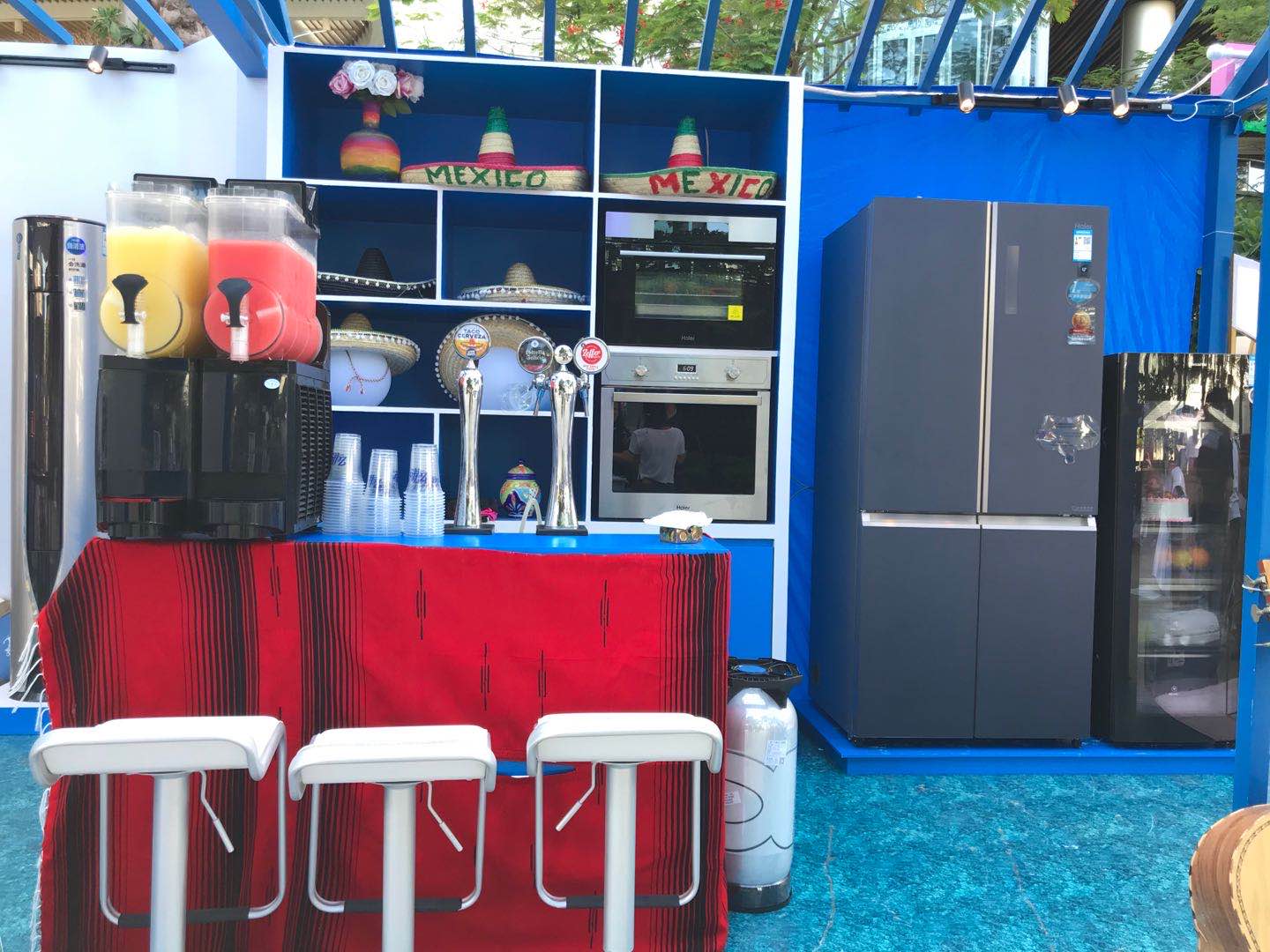 來到水吧,你可以看見冰箱、冰吧裝滿琳瑯滿目的酒水,來到現(xiàn)場的人們可以盲選3類基礎(chǔ)酒,自己或請(qǐng)調(diào)酒師為你調(diào)配一杯今天的lucky drink。冰箱里填充了滿滿的食材、水果,想吃各類冰沙都可以現(xiàn)場制作體驗(yàn)。來到廚電區(qū)域可以品嘗由海爾烤箱現(xiàn)場制作的小餅干,焦香酥脆讓你流連忘返。