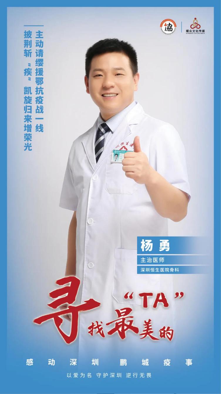 深圳恒生醫(yī)院作為社會辦三級綜合醫(yī)院,不僅被列入深圳49家設(shè)立發(fā)熱門診的醫(yī)院,同時也是首家派遣醫(yī)護隊援鄂的社會辦醫(yī)院。而楊勇,即首批堅決主動請戰(zhàn)、帶隊赴荊斬疾的優(yōu)秀黨員醫(yī)生代表。