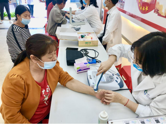 活動(dòng)現(xiàn)場,社區(qū)居民聞?dòng)嵍?,向醫(yī)務(wù)工作人員咨詢各種保健知識和健康問題,通過測量血壓、中醫(yī)學(xué)全息四診(望、聞、問、切)等形式。