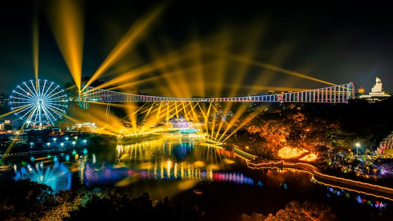 2021年是農(nóng)歷丑牛年,隱賢山莊特別推出了“與牛共舞”和小丑互動節(jié)目,景區(qū)選取了傳統(tǒng)文化里具有勤勞實干品質(zhì)的“?!睘殚_年使者,讓大家與可愛的萌牛共舞,再配上幽默搞笑的小丑與游客互動,貼合“丑?!钡男履曛黝}?!澳Щ每兹腹取笔且钥兹腹鹊亩嗖熟o謐的環(huán)境為背景,由國內(nèi)知名魔術(shù)師現(xiàn)場表演近景魔術(shù),比熒幕觀賞更有逼真和神秘的效果。“風情加勒比”將在加勒比民族舞臺上演云南佤族特色舞蹈,讓東莞游客不出遠門就能體驗到異域風情?!拌仓埂笔窃陔[賢山莊的網(wǎng)紅橋——3D玻璃橋演繹瀑布燈光秀,空中七彩燈光閃耀,與隱賢湖水交相輝映,猶如置身唯美的天上街市?!谤o橋浪漫”是隱賢山莊專門為有情人預(yù)備的一份節(jié)日禮物,在喜鵲的簇擁和音樂的伴奏下,他們從鵲橋的兩端緩緩走向?qū)Ψ剑瑢⒅腥A民族流傳千年的牛女相會的愛情故事由神話變成現(xiàn)實。
