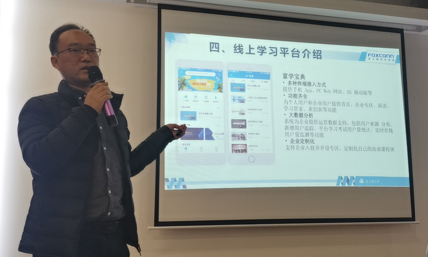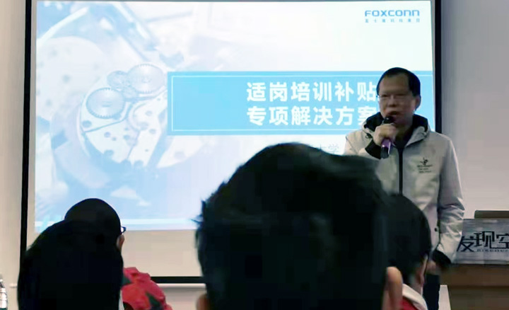 富士康大學(xué)資深專理李治佑帶來(lái)了適崗培訓(xùn)補(bǔ)補(bǔ)貼的專項(xiàng)解決方案,李專理表示,富士康大學(xué)會(huì)開放更多的課程資源,賦能富友制造企業(yè),促進(jìn)灣區(qū)制造企業(yè)筑基升級(jí)。