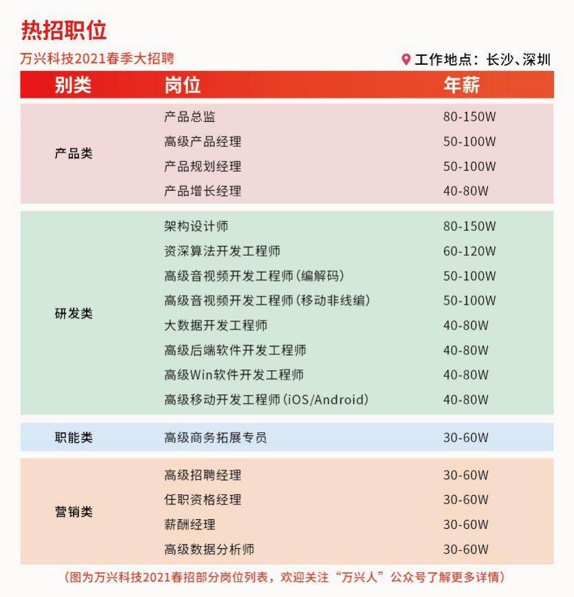 而在福利待遇方面,為吸引和集聚更多高職級IT精英,萬興科技開出優(yōu)厚薪資,更不乏年薪百萬崗位,可自由選擇工作城市,全國同崗同薪。公司還將對核心技術與業(yè)務人員股權激勵,新老員工皆可與企業(yè)同富裕、共發(fā)展。
