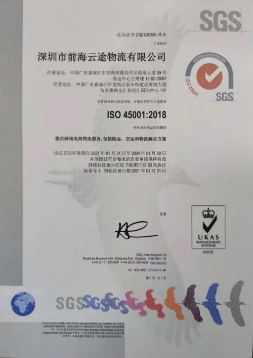 東方網(wǎng)2021年3月11日訊 繼2020年初獲得ISO9001質(zhì)量管理體系認(rèn)證后,近日云途物流順利通過專家組評(píng)審,再次獲得由國(guó)際公認(rèn)的檢驗(yàn)、鑒定、測(cè)試和認(rèn)證機(jī)構(gòu)SGS頒發(fā)的ISO14001環(huán)境管理體系、ISO45001職業(yè)健康與安全管理體系認(rèn)證。