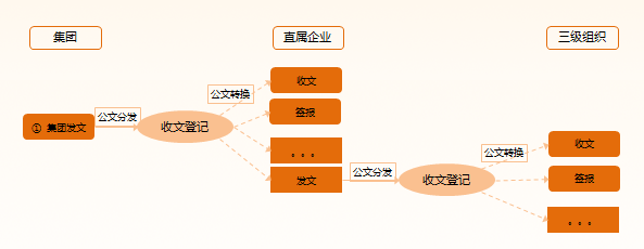 2.公文從集團分發(fā)到直屬企業(yè)后,支持單據(jù)轉(zhuǎn)換,便于直屬企業(yè)依據(jù)自己管理模式進行相應(yīng)公文處理