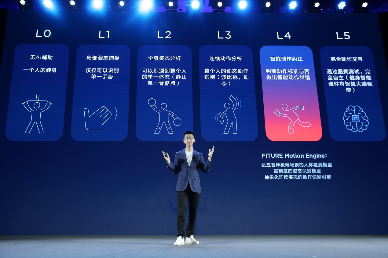作為智能健身的第一品牌,F(xiàn)ITURE在“智能健身交互”體驗上,還首次提出了人體動態(tài)識別能力的層級標準。該層級分為5個等級,涵蓋了單一的手勢識別,到由智慧大腦驅(qū)使的完全自主式交互體驗,為智能健身行業(yè)的交互能力建立了通用的標準。