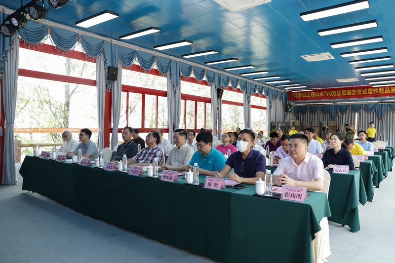 見圳客戶端·深圳新聞網(wǎng)2021年5月18日訊(記者 常軍平)“觀音山上觀山水”70萬征聯(lián)活動(dòng)終有結(jié)果,評(píng)選出15句優(yōu)秀下聯(lián),最佳下聯(lián)空缺,并于5月17日在東莞觀音山舉行了頒獎(jiǎng)儀式及妙聯(lián)品鑒座談會(huì)?;顒?dòng)現(xiàn)場(chǎng),楹聯(lián)家們雅聚一堂,共同見證了本次征聯(lián)活動(dòng)優(yōu)秀獎(jiǎng)的頒出。以楹聯(lián)為媒,進(jìn)行交流互動(dòng)。活動(dòng)期間,組委會(huì)代表東莞觀音山將結(jié)余款項(xiàng)67萬元悉數(shù)捐給東莞樟木頭鎮(zhèn)慈善會(huì)。鑒于觀音山在推動(dòng)楹聯(lián)文化的傳承發(fā)展做出的突出貢獻(xiàn),被中國(guó)楹聯(lián)學(xué)會(huì)授予“中國(guó)楹聯(lián)文化名山”稱號(hào)。