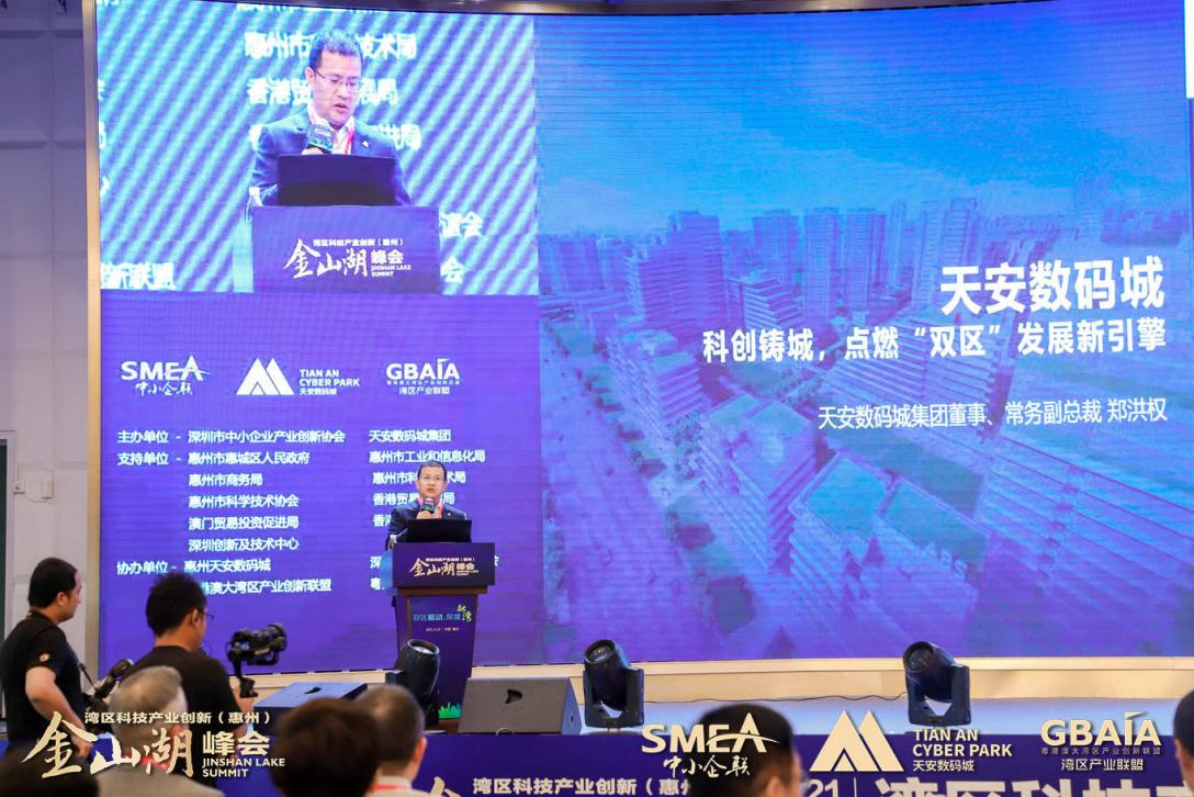 天安數(shù)碼城集團(tuán)董事、常務(wù)副總裁鄭洪權(quán)《天安數(shù)碼城——打造粵港澳大灣區(qū)科技創(chuàng)新引擎》演講中