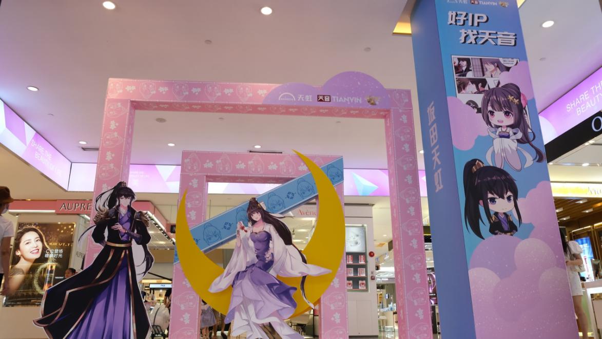 坂田天虹正門設(shè)有通靈妃打卡點(diǎn),側(cè)門布置了通靈妃漫畫墻,喜歡通靈妃的小伙伴可以線下看漫畫啦!在三樓和四樓也有千云兮和夜幽冥等你來打卡哦!