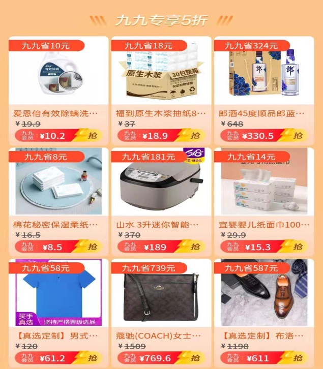 2020年11月,九九會(huì)員正式推出,主打“超值會(huì)員價(jià)”權(quán)益,突出“首單回本、再買即賺”會(huì)員心智,提供全品類近萬款會(huì)員價(jià)商品和周到的服務(wù)。自上線以來“九九會(huì)員”不斷推出新功能、新玩法,豐富會(huì)員權(quán)益。截至2021年5月,九九會(huì)員月卡會(huì)員已突破300萬人,年卡會(huì)員近50萬人。