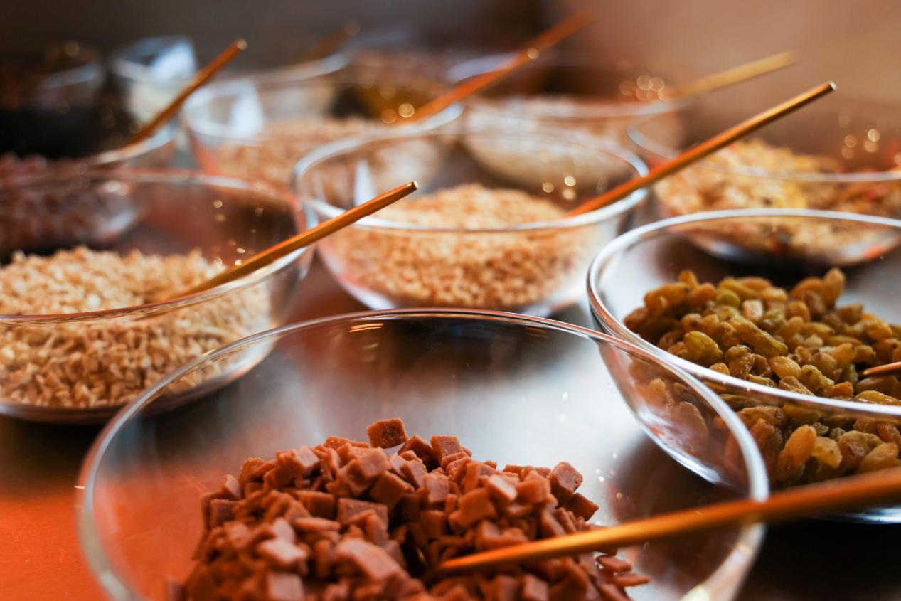 除了產(chǎn)品口味、形式上的革新,探魚(yú)的lab店還新增了“DIY”專區(qū)。茶水、水果、涼菜、冰粉都可以在DIY區(qū)根據(jù)自己的口味隨意搭配,增加了消費(fèi)者在用餐過(guò)程中的可玩性。值得一提的是,探魚(yú)的DIY冰粉取消了目前市場(chǎng)中常見(jiàn)的或固定或多樣的搭配方式,為消費(fèi)者提供了3種冰粉基底,18種各色配料,搭配方式和用量全部由消費(fèi)者自己選擇。不同口味質(zhì)地的配料為消費(fèi)者提供了至少17000+種配比方式,這樣的設(shè)置潛在性地增加了用餐的社交功能,在整個(gè)就餐過(guò)程中,消費(fèi)者被擁有了“體驗(yàn)者”與“傳播者”的功能性身份,擁有了一場(chǎng)“就餐+游戲”的個(gè)性體驗(yàn)。