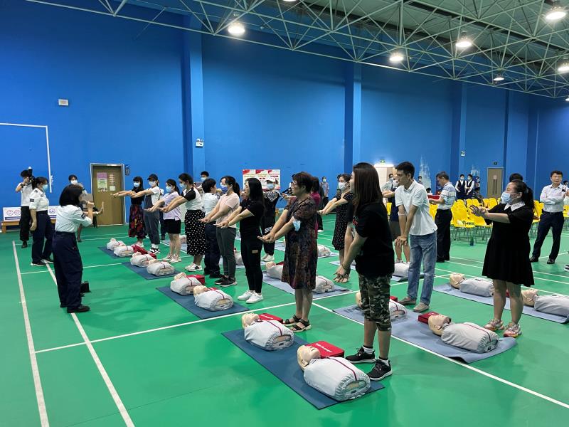 授牌儀式結(jié)束后,專業(yè)急救講師們?cè)诂F(xiàn)場(chǎng)為社區(qū)的爸爸媽媽和孩子們開展了示范基地首期急救課程。