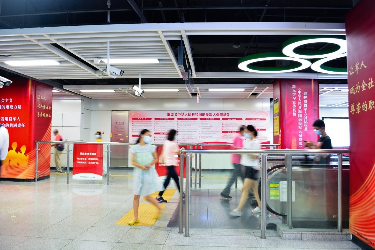 在地鐵石廈站,站廳包柱上的“維護(hù)退役軍人合法權(quán)益”、“讓軍人成為全社會(huì)尊崇的職業(yè)”等標(biāo)語映入眼簾,為普法宣傳增添了濃厚氛圍。在安檢口處,還設(shè)立了解讀《中華人民共和國(guó)退役軍人保障法》墻貼,精心設(shè)計(jì)的公益宣傳吸引了很多市民駐足觀看。