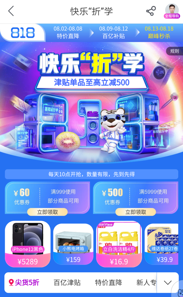 以818大促為例,8月12日至18日期間,“真快樂”以“特價直降”“百億津貼”和“巔峰秒殺”三重活動讓利消費(fèi)者,一重更比一重優(yōu)惠?;顒痈@采w食品酒水、服飾鞋包、家居家裝、日用百貨、母嬰玩具、美妝個護(hù)、家用電器等全品類品質(zhì)好物。與此同時,消費(fèi)者不僅可以享受“真快樂”提供的折扣優(yōu)惠,還可以通過國美“折上折A PP”領(lǐng)券,再次享受優(yōu)惠,實(shí)現(xiàn)折上再折,折上再減。無需費(fèi)心拼單、湊單,一鍵領(lǐng)取優(yōu)惠券,折扣即可到手。
