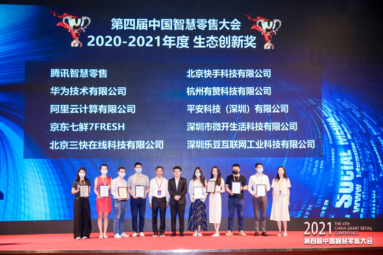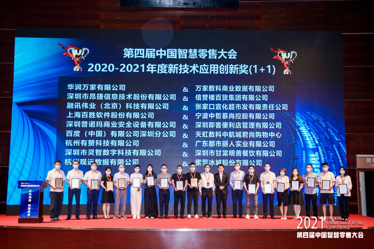 大會開幕式上頒發(fā)“2020-2021年度智慧零售系列大獎”,大會組委會從行業(yè)新技術應用創(chuàng)新;經營、商業(yè)、組織、管理、服務等模式創(chuàng)新;全渠道、全產業(yè)鏈、全生產要素賦能等生態(tài)創(chuàng)新;領軍者推動智慧零售創(chuàng)新發(fā)展等四個維度,共頒發(fā):新技術應用創(chuàng)新獎、模式創(chuàng)新獎、生態(tài)創(chuàng)新獎、創(chuàng)新人物獎四大獎項。華潤萬家、靈智數科、有贊、樂信等企業(yè)獲此榮譽,天虹股份譚曉華、百果園焦岳等人獲得創(chuàng)新人物獎。