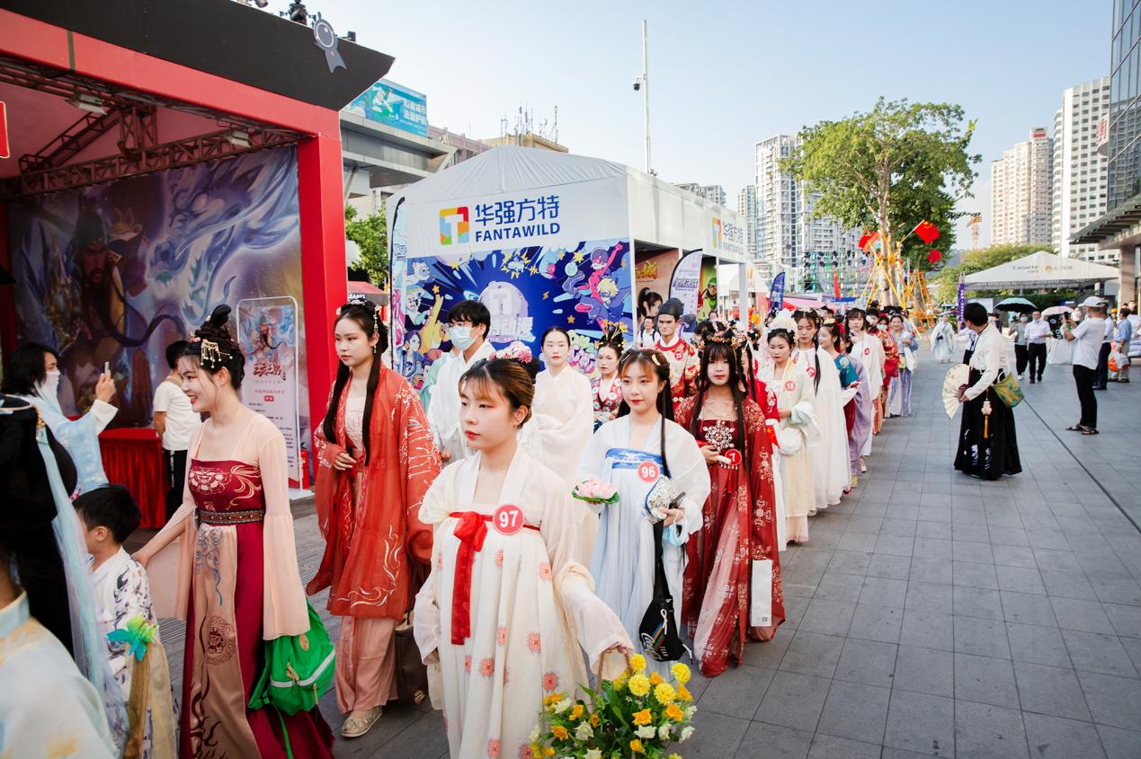 為了提升夜間經(jīng)濟(jì)業(yè)態(tài),節(jié)展期間電玩節(jié)組委會(huì)在每天的16時(shí)至21時(shí)共計(jì)舉辦了三十余項(xiàng)不同類型的賽事活動(dòng),包括COSPLAY大賽、紅白歌會(huì)、國(guó)風(fēng)國(guó)潮大賽、“第四屆王者榮耀全國(guó)大賽城市賽”“英雄聯(lián)盟 ·金鏟鏟之戰(zhàn)線下體驗(yàn)派對(duì)”、主街游戲競(jìng)技場(chǎng)、COSPLAY巡游、漢服巡游、國(guó)風(fēng)走秀等。同時(shí)還邀請(qǐng)知名COSPLAY團(tuán)、人氣COSER熊祁、唯安、組合844樂(lè)隊(duì)、七朵家族舉辦了專場(chǎng)見(jiàn)面會(huì)和簽售會(huì),吸引了大量觀眾駐足圍觀,臺(tái)上臺(tái)下熱情互動(dòng),掀起陣陣活動(dòng)高潮,以沉浸式的體驗(yàn)帶動(dòng)新消費(fèi),打造深圳夜間消費(fèi)新地標(biāo)。