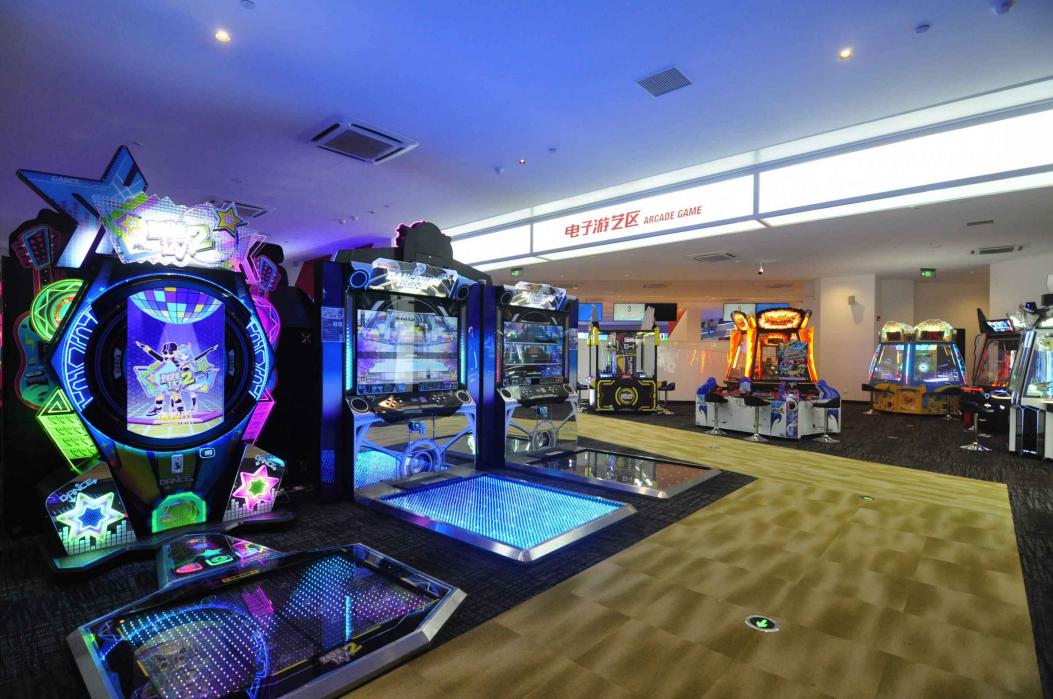 大型電子游藝區(qū)域,此區(qū)域的占地比廣州店更大,并引入了全新的大型游樂設(shè)施,在這里可以享受到260臺以上的豐富游戲。抓娃娃機、推硬幣游戲、音樂游戲、體育類游戲等深受年輕人們喜愛的游戲在此齊聚一堂。為了能讓客人體驗到最新的機種,游戲器械也在隨時進(jìn)行更新,讓客人忘卻時間流逝,流連忘返,樂不思蜀!