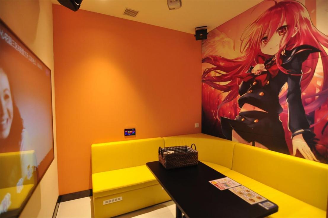 KARAOKE區(qū)域,卡拉OK包廂設(shè)有動漫、和風(fēng)、美式風(fēng)等不同主題背景,客人可以按照個人喜好或心情選擇喜歡的房間。不同包廂有著風(fēng)格各異的投影和舞臺,這里也可以舉辦生日會和公司社員團建活動。飲食區(qū)提供的披薩、熱狗、意大利面等小食和飲料都可以帶進(jìn)包廂,讓邊吃著美食邊舉行派對成為現(xiàn)實。