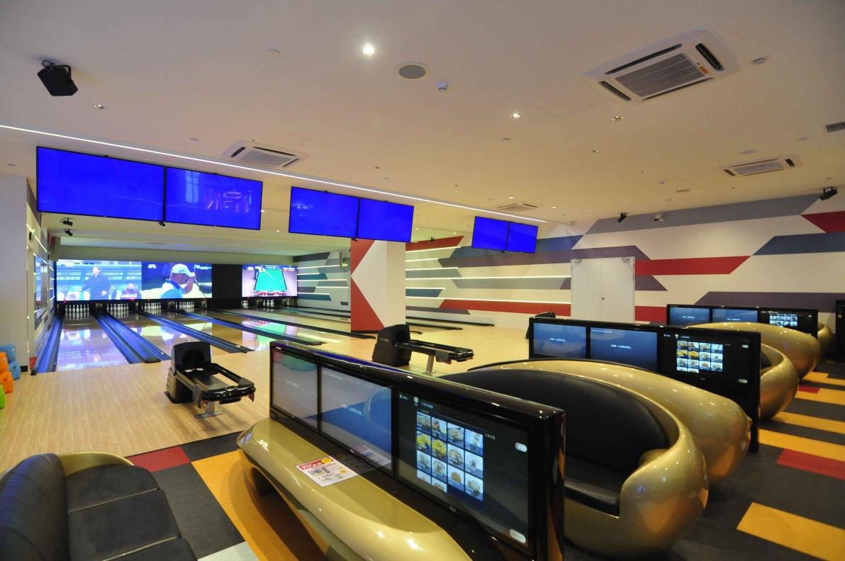 保齡球區(qū)域,朗玩的保齡球采用了美國Brunswick公司最新的保齡球機。在放置保齡球瓶的上方墻面上,設(shè)置了放映各種運動、音樂節(jié)目的大屏幕。四周設(shè)有的攝像鏡頭能夠全方位捕捉玩家們投球瞬間,在大屏幕上可以看到這些精彩瞬間。采用了鐳射光線等技術(shù)的華麗活動(月光投球游戲)每小時都會進(jìn)行一次,閃耀炫酷的設(shè)計會顛覆玩家們一直以來對于保齡球的認(rèn)知!