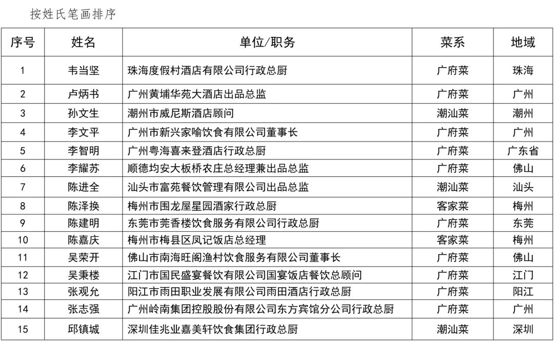 據(jù)悉,“廣東省‘粵菜師傅’星級名廚認定評選活”由廣東省三項工程領導小組辦公室啟動,省“粵菜師傅”人才培養(yǎng)與評價聯(lián)盟具體組織評選。據(jù)廣東省人社廳二級巡視員、職建處處長劉正讓介紹,“粵菜師傅”工程開展三年多來,培養(yǎng)了一大批“粵菜師傅”新秀,也培育了一大批“粵菜師傅”名廚,開展這次星級“粵菜師傅”評選,就是要樹立“粵菜師傅”標桿,評出業(yè)界公認的技藝高超、業(yè)績突出的“徳技雙馨”名廚。1-3星由各地市組織評選,4-5星由廣東省“粵菜師傅”人才培養(yǎng)與評價聯(lián)盟組織實施,聯(lián)盟成立了組委會,并組建了一個25人的評審專家組,設計了執(zhí)行方案。通過資料審核和第一階段的認定評分,110名大廚脫穎而出,其中60名為四星名廚,50名從業(yè)時間長、業(yè)績突出、社會知名度高的大廚將經過“技能展示及答辯”階段,角逐30個五星名額,其余20名自動成為四星名廚。