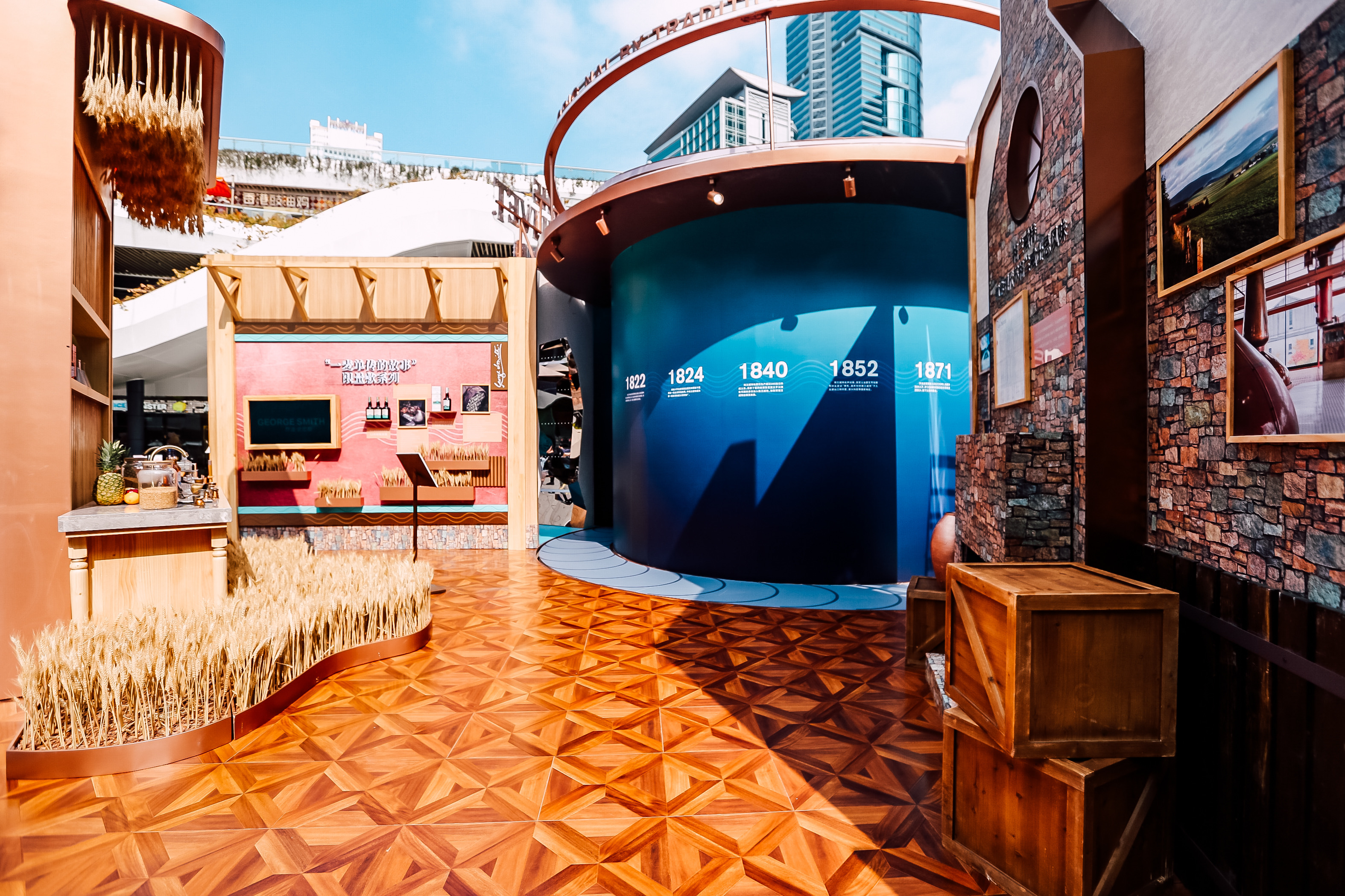 創(chuàng)造不止步,格蘭威特不斷尋求產(chǎn)品革新,創(chuàng)造了以花果芬芳和馥郁口感為特色的諸多單一麥芽威士忌佳釀。步入時光穿梭酒廠的“傳承與創(chuàng)造”空間,花果芳香綻放,充滿自然氣息的環(huán)境中呈現(xiàn)了格蘭威特豐富的產(chǎn)品組合以及其獨特的優(yōu)雅細致風(fēng)格??臻g一側(cè)重點展示了品牌的經(jīng)典之作——格蘭威特18年,作為醇厚均衡的單一麥芽威士忌佳釀,它是歲月與優(yōu)雅的詮釋,芳醇柔滑,酒體均衡。此外,另一款全新威士忌臻品——格蘭威特14年干邑桶陳釀也在空間另一側(cè)隆重展出。歷經(jīng)美國威士忌桶與雪莉桶至少14年的陳年之后,精選部分酒液換桶陳年于高品質(zhì)法國干邑橡木桶,格蘭威特14年干邑桶陳釀?chuàng)碛酗枬M且濃郁的甜美風(fēng)味,并創(chuàng)新地將白蘭地香氣與品牌標志性的優(yōu)雅細致花果香融為一體,加上瓶身奪目的紫色設(shè)計,威士忌愛好者可以通過參與現(xiàn)場品鑒挑戰(zhàn)贏取品鑒機會,解鎖別具一格的風(fēng)味之旅。