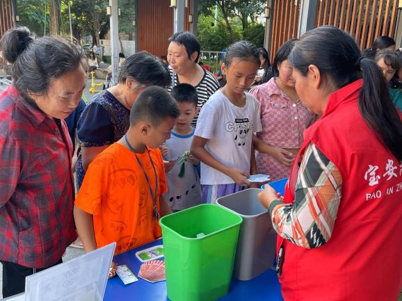 在換享留影區(qū)中,蒲公英講師開啟宣教的熱潮,向居民講解垃圾分類相關知識,派發(fā)垃圾分類宣傳折頁和《條例》手冊,引導居民從日常生活中細微開始,踐行源頭減量行動。