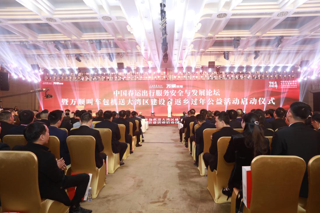 中國(guó)春運(yùn)出行服務(wù)安全與發(fā)展論壇”暨“萬(wàn)順叫車包機(jī)送大灣區(qū)建設(shè)者返鄉(xiāng)過(guò)年公益活動(dòng)”啟動(dòng)儀式2019年12月8日在深圳舉行。