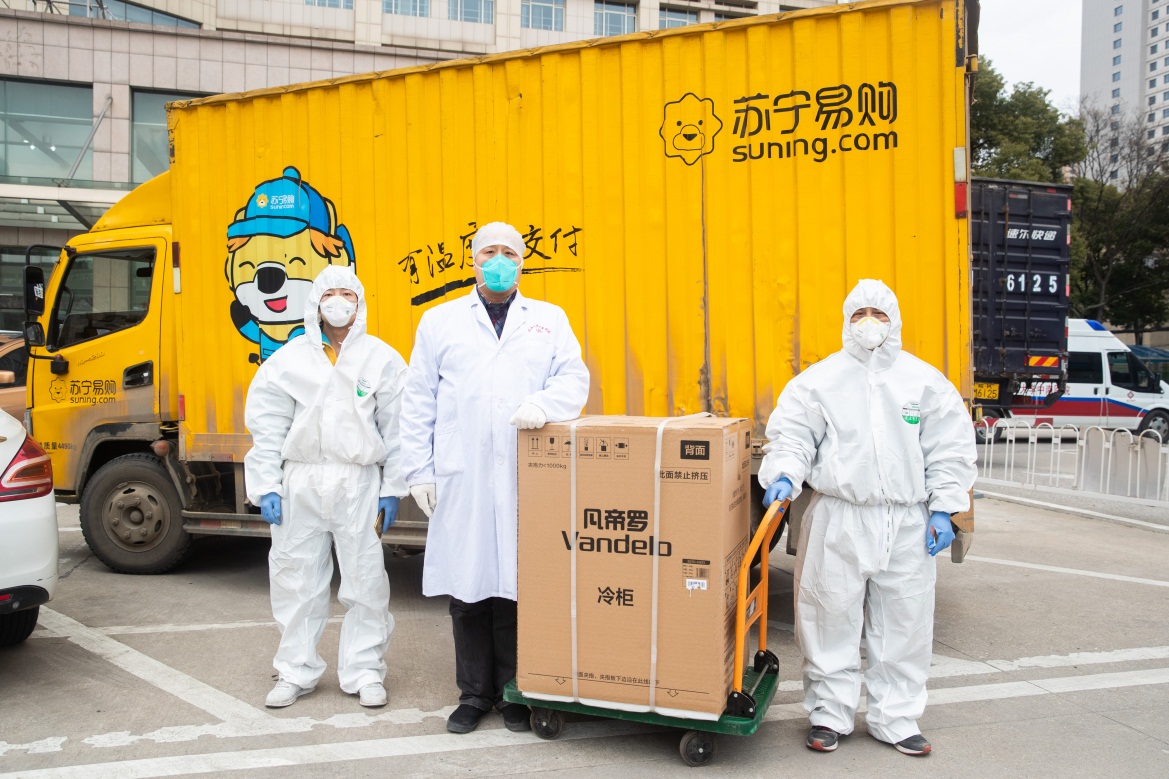 蘇寧大客戶在保障政企單位采購的同時,在復(fù)工第一周為南方電網(wǎng)和南京市公安局捐贈了酒精消毒棉片、免洗洗手液及次氯酸鈉消毒液等防疫物資。