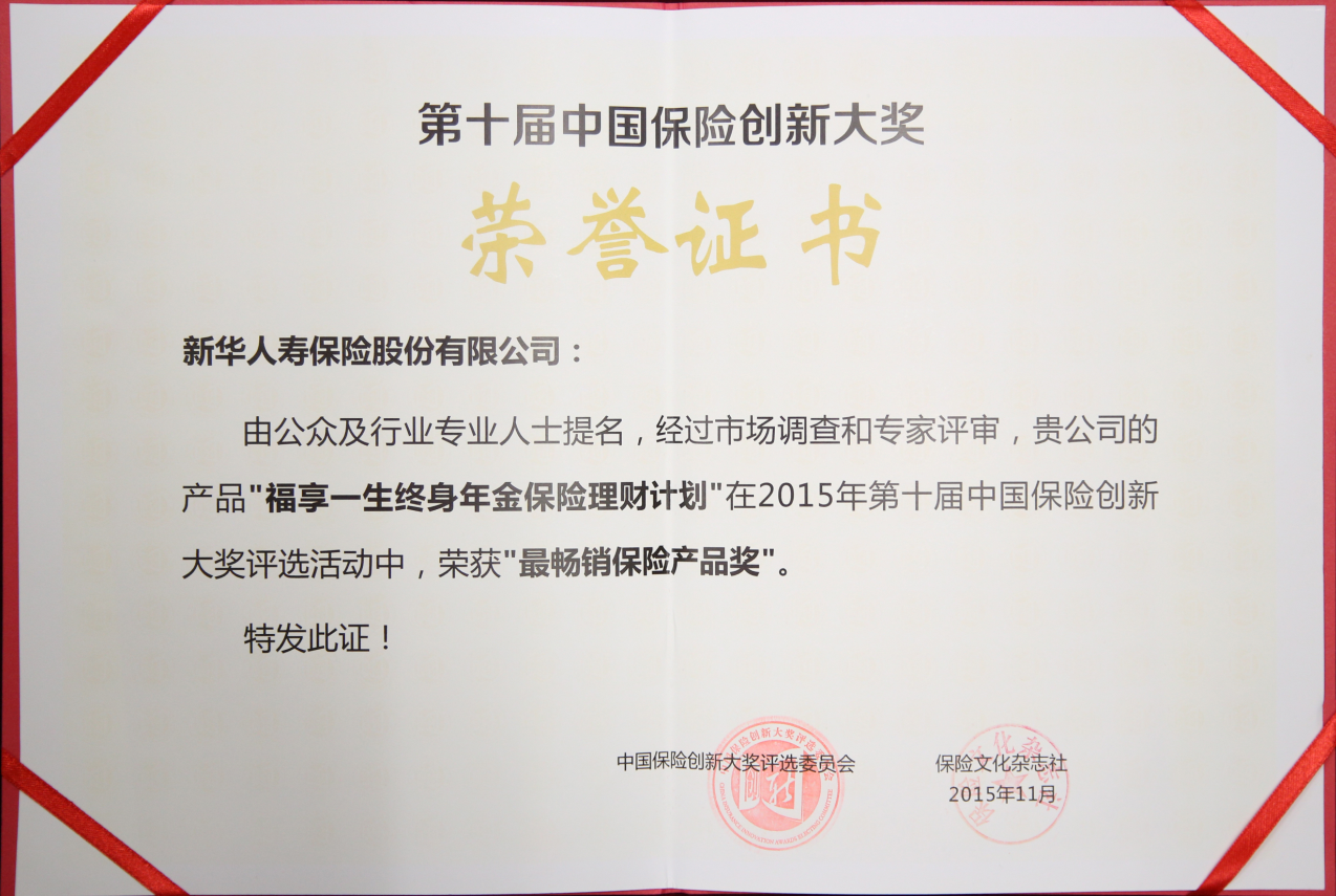 2015年最暢銷保險產(chǎn)品獎