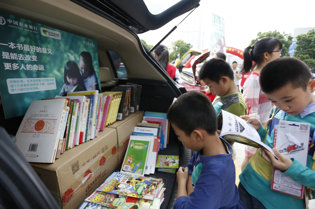 本次活動(dòng)將車尾箱作為展臺(tái),活動(dòng)參與者按照1:1進(jìn)行舊書交換,或到深圳農(nóng)行現(xiàn)場(chǎng)設(shè)置的捐書點(diǎn)捐獻(xiàn)舊書,每捐出五本舊書,可獲得由農(nóng)行送出的10元書劵。活動(dòng)吸引來自錦田小學(xué)、深圳實(shí)驗(yàn)學(xué)校中學(xué)部及深圳新聞網(wǎng)網(wǎng)友共40多個(gè)家庭參與,僅兩個(gè)小時(shí)便交出漂亮的“成績(jī)單”,現(xiàn)場(chǎng)交換圖書900多本,捐贈(zèng)愛心書籍1000余本。