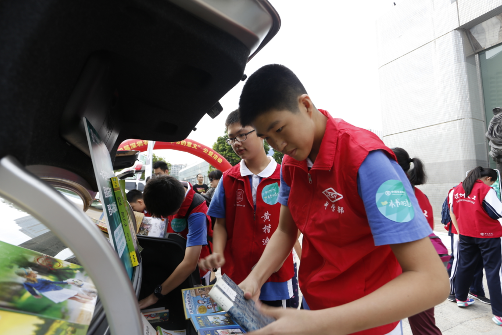 本次活動將車尾箱作為展臺,活動參與者按照1:1進(jìn)行舊書交換,或到深圳農(nóng)行現(xiàn)場設(shè)置的捐書點(diǎn)捐獻(xiàn)舊書,每捐出五本舊書,可獲得由農(nóng)行送出的10元書劵?;顒游齺碜藻\田小學(xué)、深圳實(shí)驗(yàn)學(xué)校中學(xué)部及深圳新聞網(wǎng)網(wǎng)友共40多個家庭參與,僅兩個小時(shí)便交出漂亮的“成績單”,現(xiàn)場交換圖書900多本,捐贈愛心書籍1000余本。