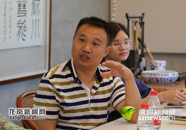 當(dāng)天的講堂中,結(jié)合書法主題,李靜與聽課者圍坐一桌,以十分親切自然的方式與龍崗書法愛好者進(jìn)行了交流。從書法的概念內(nèi)涵,到書法由古至今的發(fā)展歷程,再到書法創(chuàng)作的理念精髓,李靜深刻剖析了書法的基本含義,深入淺出講解了書法中的歷史因子。在現(xiàn)場聽課的書法愛好者們聽得認(rèn)真,課后還與李靜進(jìn)行了深入的交流。