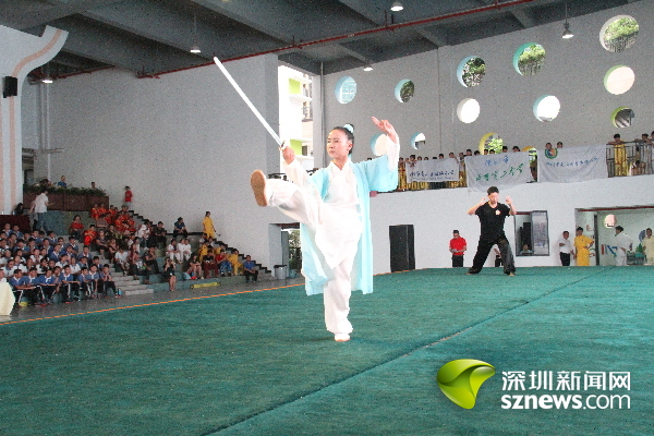 深圳新聞網(wǎng)訊(記者 王志明 通訊員趙小平)長(zhǎng)拳如虹,刀光棍影。5月26日,南山區(qū)2017年中小學(xué)傳統(tǒng)文化節(jié)武術(shù)展示活動(dòng)在南山外國(guó)語(yǔ)學(xué)校(集團(tuán))大沖學(xué)校精彩上演,來自南山區(qū)西麗二中、南頭城小學(xué)等16所學(xué)校幼兒園的師生“以武會(huì)友”,進(jìn)行了太極劍、南拳和刀術(shù)等48個(gè)項(xiàng)目角逐,并向大家展示了所學(xué)到的“中國(guó)功夫”。南山區(qū)副區(qū)長(zhǎng)練聰觀看了武術(shù)展示。
