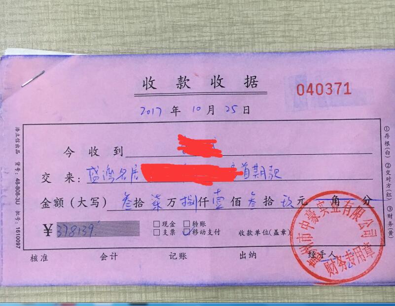 網(wǎng)友提供的收款收據(jù)
