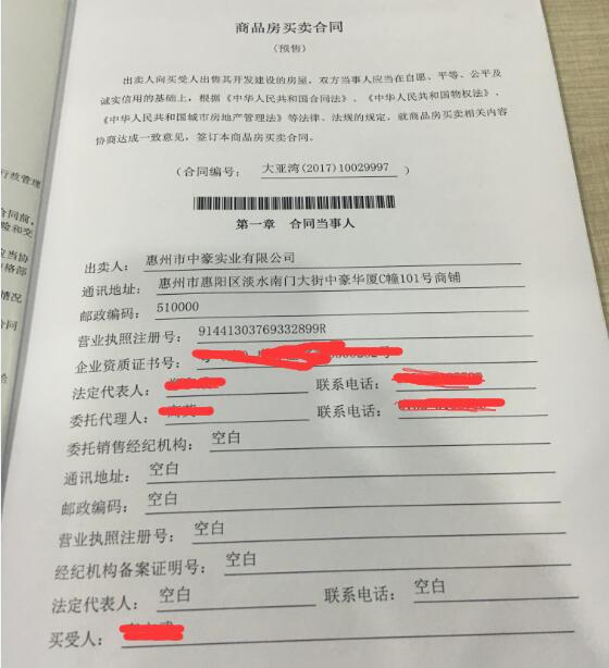 網(wǎng)友提供的預(yù)售合同(部分)