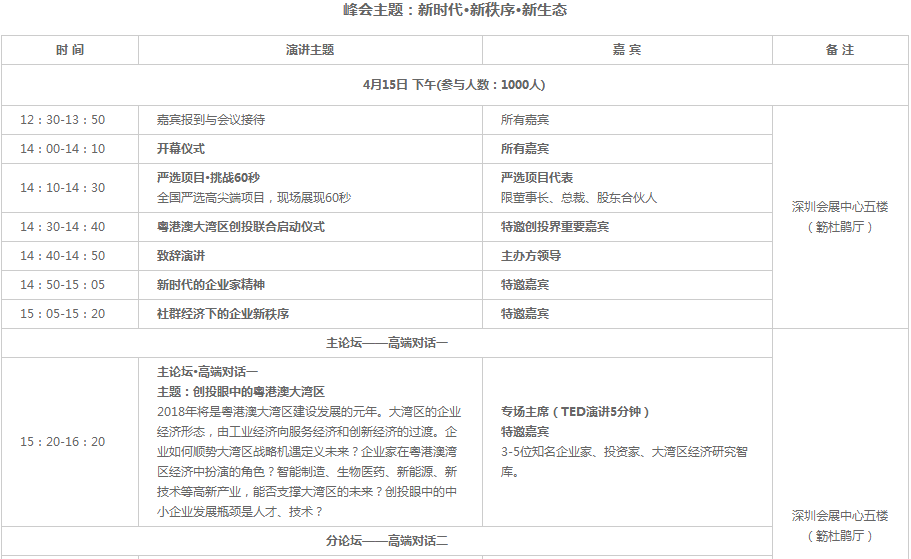 2018總裁創(chuàng)新峰會以“新時代、新秩序、新生態(tài)”為主題,秉承“全球智慧、共享發(fā)展”理念,以全球化視野的戰(zhàn)略性眼光,順勢大眾創(chuàng)業(yè)、萬眾創(chuàng)新和粵港澳大灣區(qū)的戰(zhàn)略機遇,積極推動建設(shè)新時代企業(yè)命運共同體,通過“主旨演講+高端對話+資本對接會”,圍繞科技、產(chǎn)業(yè)、金融,關(guān)注創(chuàng)新創(chuàng)業(yè)與創(chuàng)投,邀請政界領(lǐng)袖、中外知名企業(yè)總裁,500強企業(yè)商學(xué)院院長、知名投資家、智庫專家、商會協(xié)會代表、財經(jīng)媒體等,共同探討新經(jīng)濟(jì)背景下中國企業(yè)可持續(xù)發(fā)展的機遇與挑戰(zhàn)。