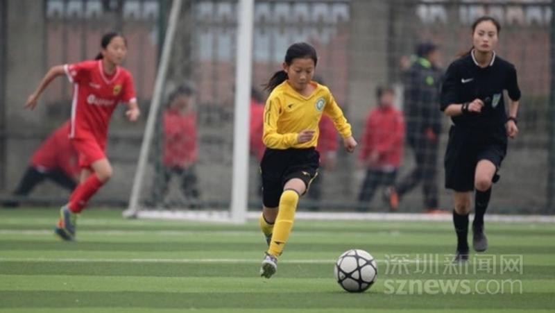 東方小學(xué)學(xué)生左婉欣代表寶安隊(duì)參加全國青少年足球比賽帶球突破