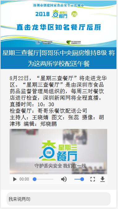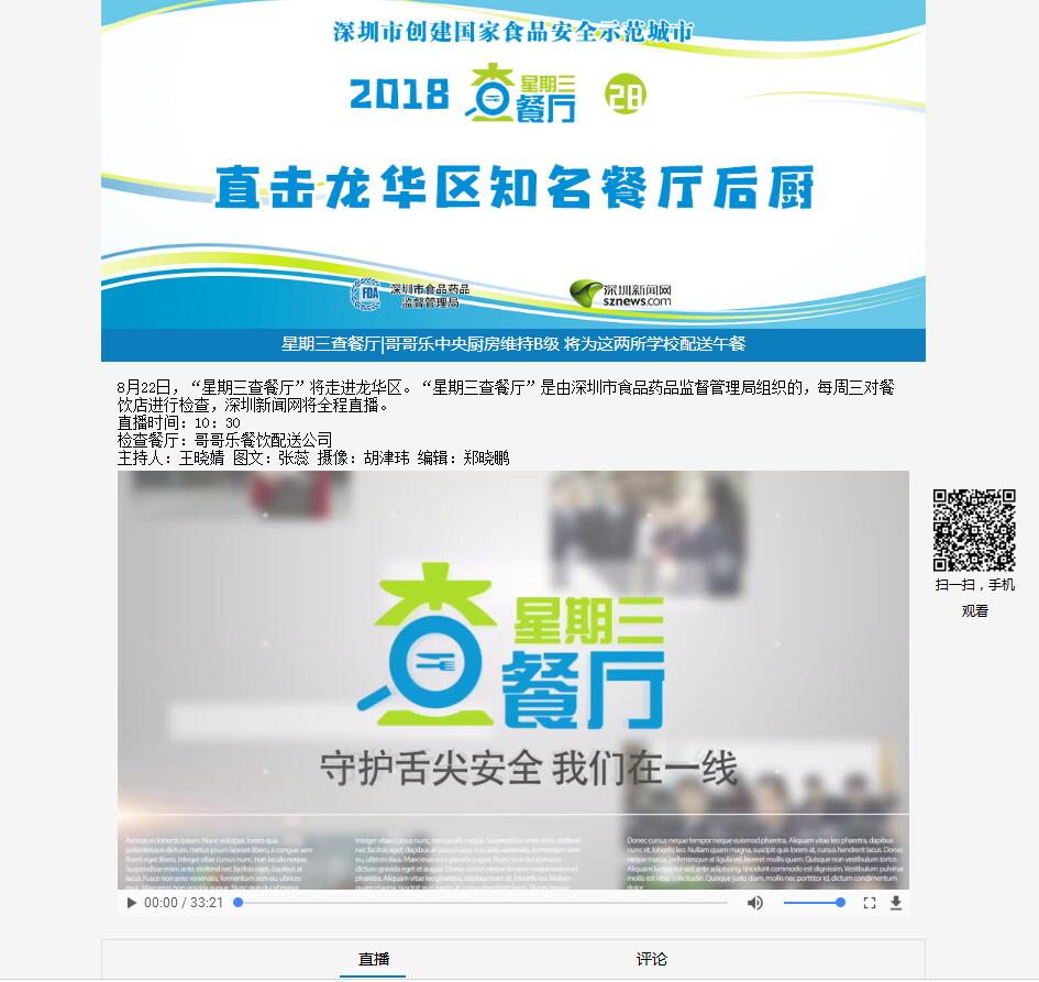 “星期三查餐廳”節(jié)目組采用深圳新聞網(wǎng)直播平臺,記者使用手機(jī)或攝像機(jī)進(jìn)行拍攝,照片、直播視頻、文本內(nèi)容等回傳后方編輯,編輯在直播平臺上進(jìn)行內(nèi)容整理,將執(zhí)法行動全程進(jìn)行視頻+圖文全程直播。網(wǎng)友無需下載任何客戶端,可通過Internet直接在PC、移動客戶端等設(shè)備上實時觀看執(zhí)法過程,并能在線對直播內(nèi)容進(jìn)行評論。